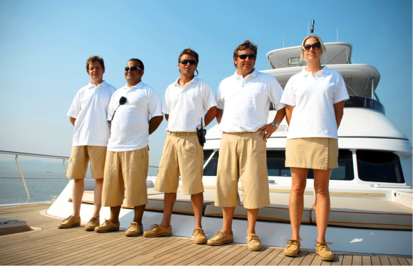 Patrones, marineros y azafatas profesionales. Tripulación para navegación, servicio y asistencia a bordo.